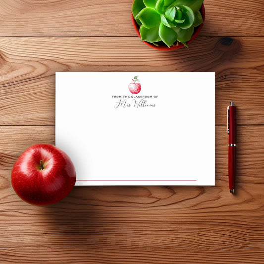 Apple Stationery for Teacher | Personalized Note Cards Set of 10