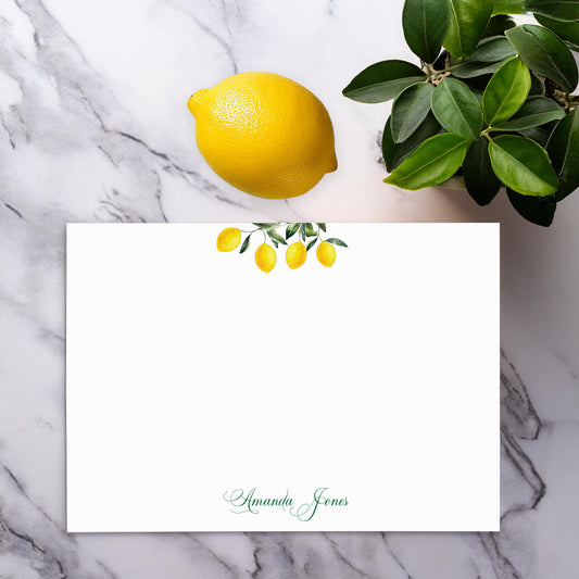 Watercolor Lemon Stationery set of 10 | Personalized Note Cards with Name
