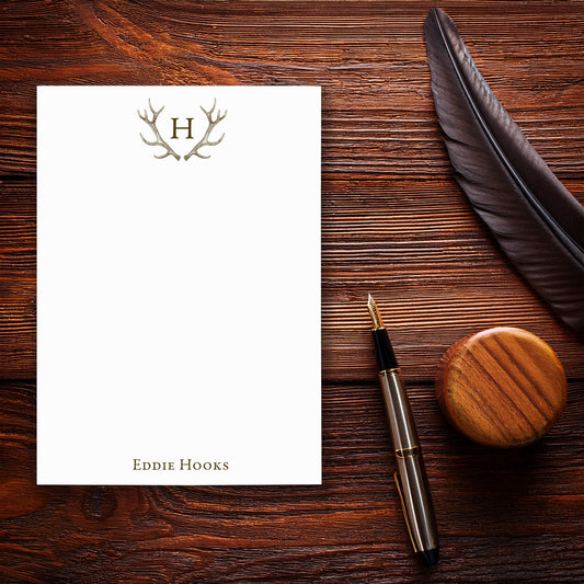 Antlers Monogram Stationery for Men | Personalized Note Cards Set of 10