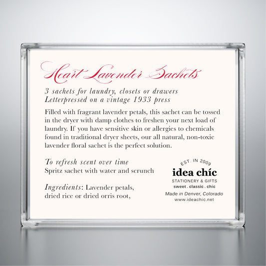 Heart Lavender Sachet - 3 Pack for Fresh Laundry or Drawers