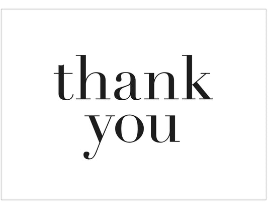 Postales de agradecimiento modernas | Papel negro sobre blanco - Paquete de 10