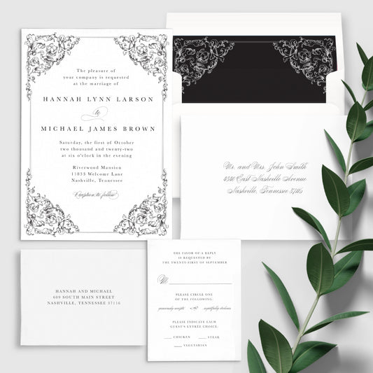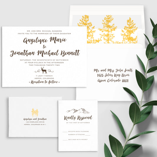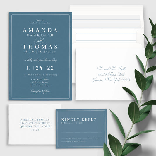 Las invitaciones de boda Idea Chic están hechas con papel de alta calidad. Ofrecemos diseño, impresión y montaje con nuestro propio equipo en nuestra papelería de Denver para garantizar que sus invitaciones sean perfectas para su día especial.