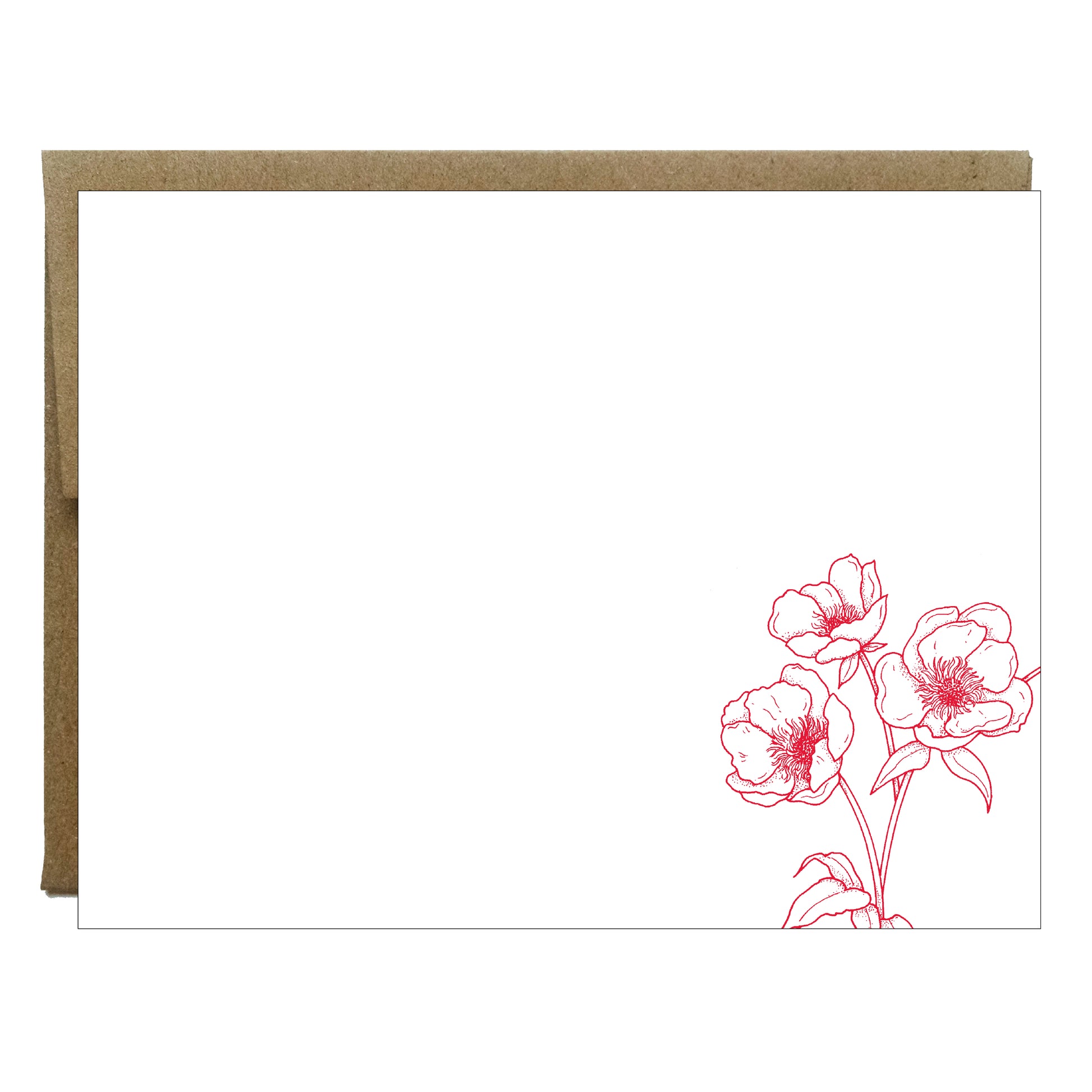 Cette belle carte est douce au toucher et superbe pour les amateurs de toucher. Fabriquée en coton ivoire épais, chaque carte est imprimée individuellement à la main avec trois jolis coquelicots rouges dans le coin inférieur droit.